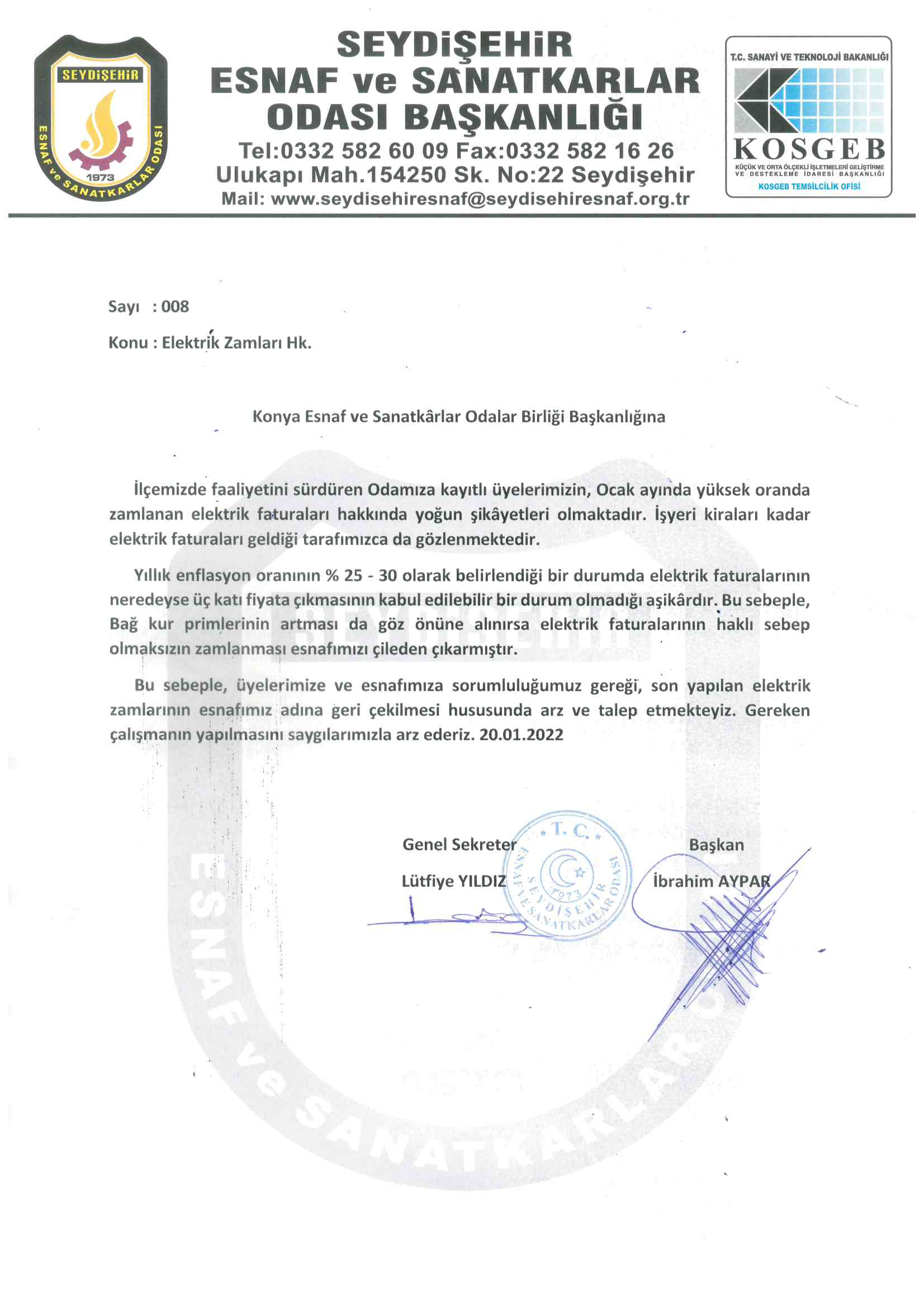 Elektriğe son ayda yapılan fahiş zamlara ilk tepki üyelerimiz adına odamız tarafından ilgili kurumlara itirazı yapıldı.