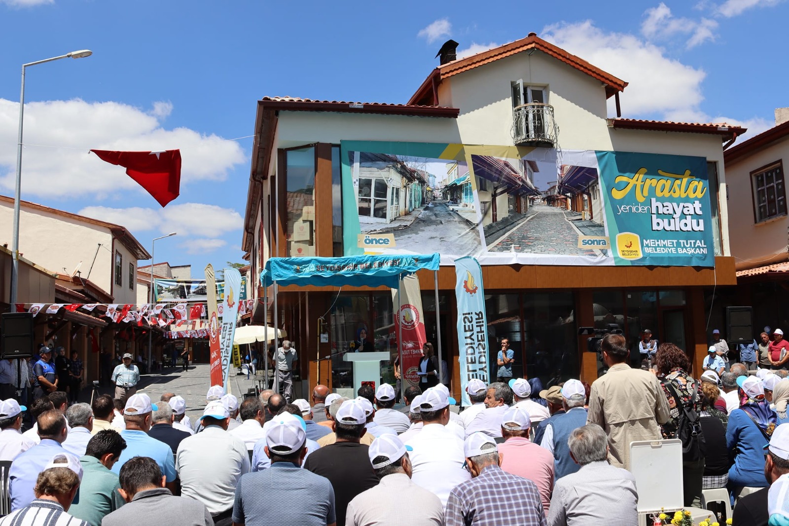 Seydişehir'imizin ticari hayatında önemli yer teşkil eden ve Konya Valiliği, Konya Büyükşehir belediyesi ve Seydişehir Belediyesince ihale edilerek yapımı devam eden Arasta Çarşısının, proje kapsamında, yapılıp bitirilen bölümlerinin, Cephe Giydirme ve Sağlıklaştırma Projesinin açılışı yapıldı.